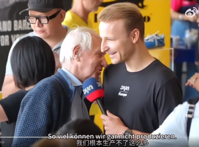 德国电视台记者采访商店老板时表示,“在有了超级明星樊振东之后的第二个比赛日,你是不是挺享受现在的氛围?感觉怎么样?”