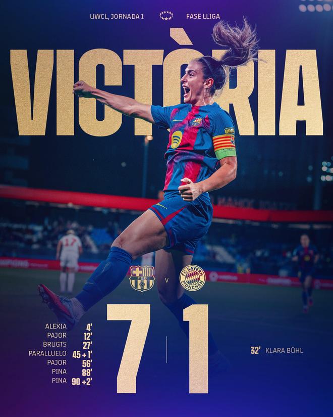 全场比赛由普特拉斯在第4分钟首开纪录,皮娜和帕约尔双双梅开二度,巴萨女足五人建功打入七球大胜拜仁女足。